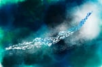 The moment that this female swimmer has just dived in and is just under the surface of the water. A combination of illustration which has been used to create the water and photography which has been used to create the swimmer. On close inspection the swimmer is made up of sections of a photograph showing the pastel colours that are reflected on water during a sunrise.
